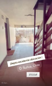 Se vende Departamento en la comuna de Nuñoa, excelentes accesos, colegios, centro comercial, autopista, metro, cuenta con amplios espacios verdes, estacionamiento, se ubica en un segundo piso, tiene 3 habitaciones, 1 amplio baño, cocina americana, y living -comedor, escalera de acceso amplia, no hay conserjeria pero tiene un sistema de porton electrico.
